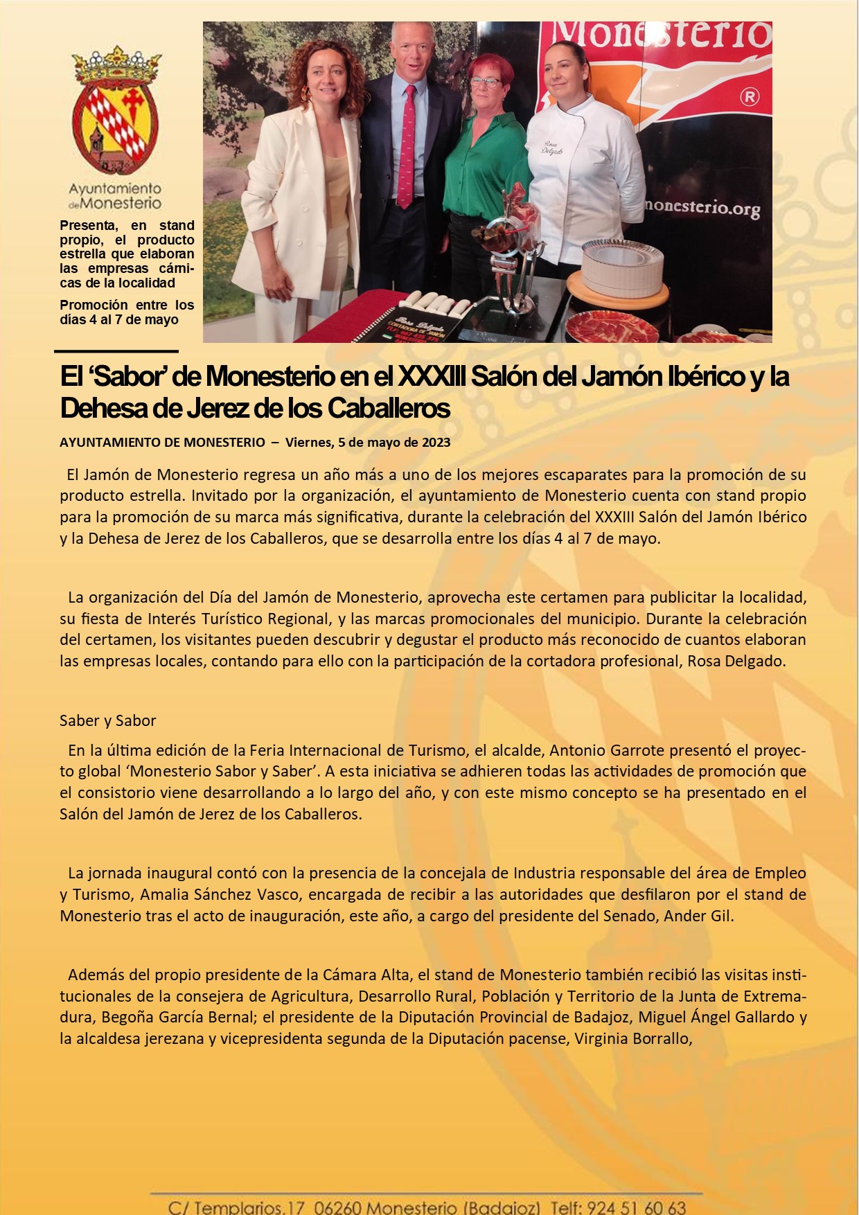 El ‘Sabor’ de Monesterio en el XXXIII Salón del Jamón Ibérico y la Dehesa de Jerez de los Caballeros