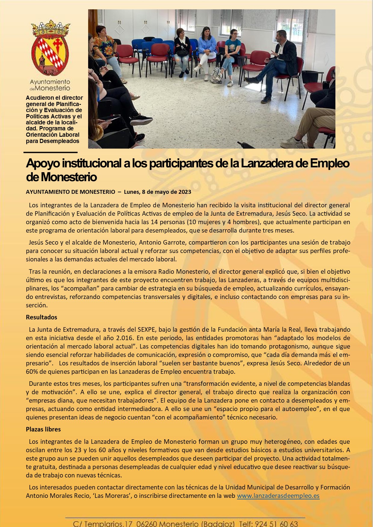 Apoyo institucional a los participantes de la Lanzadera de Empleo de Monesterio