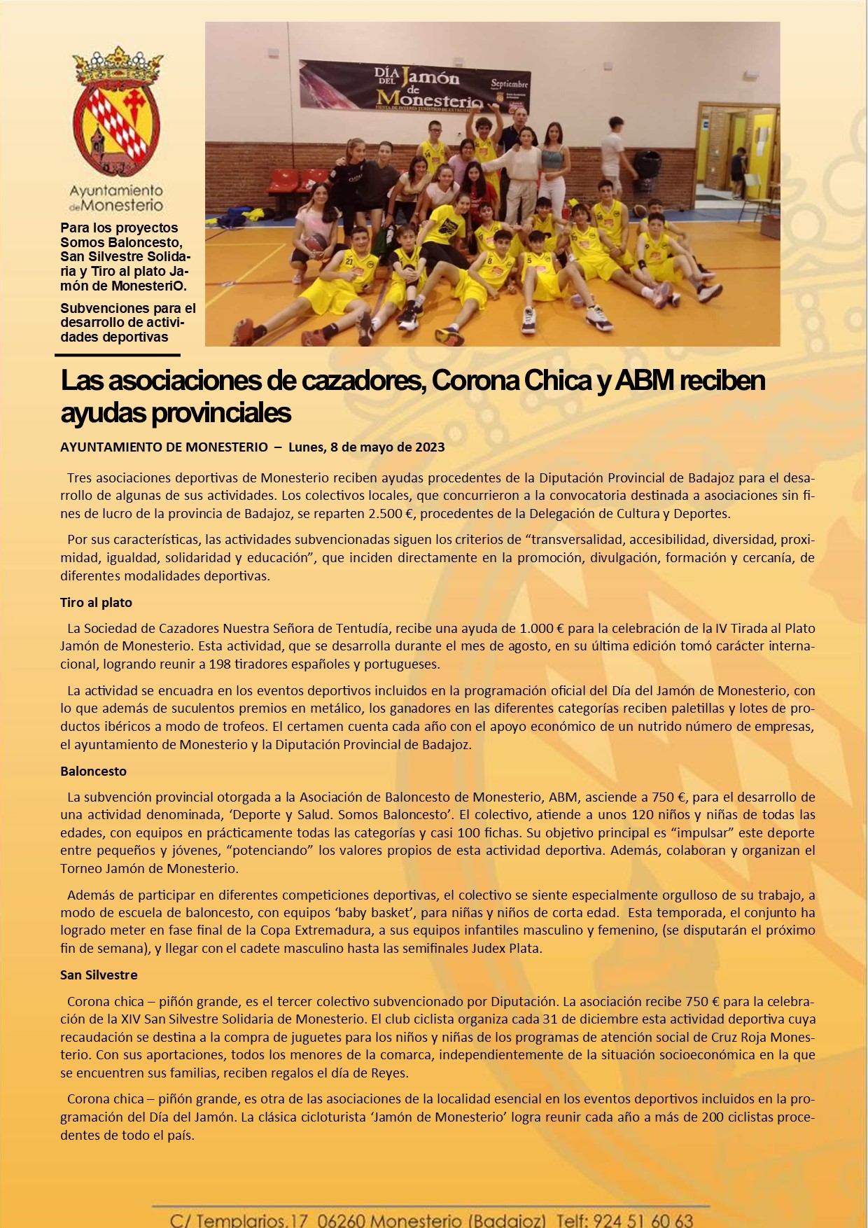 Las asociaciones de cazadores, Corona Chica y ABM reciben ayudas provinciales