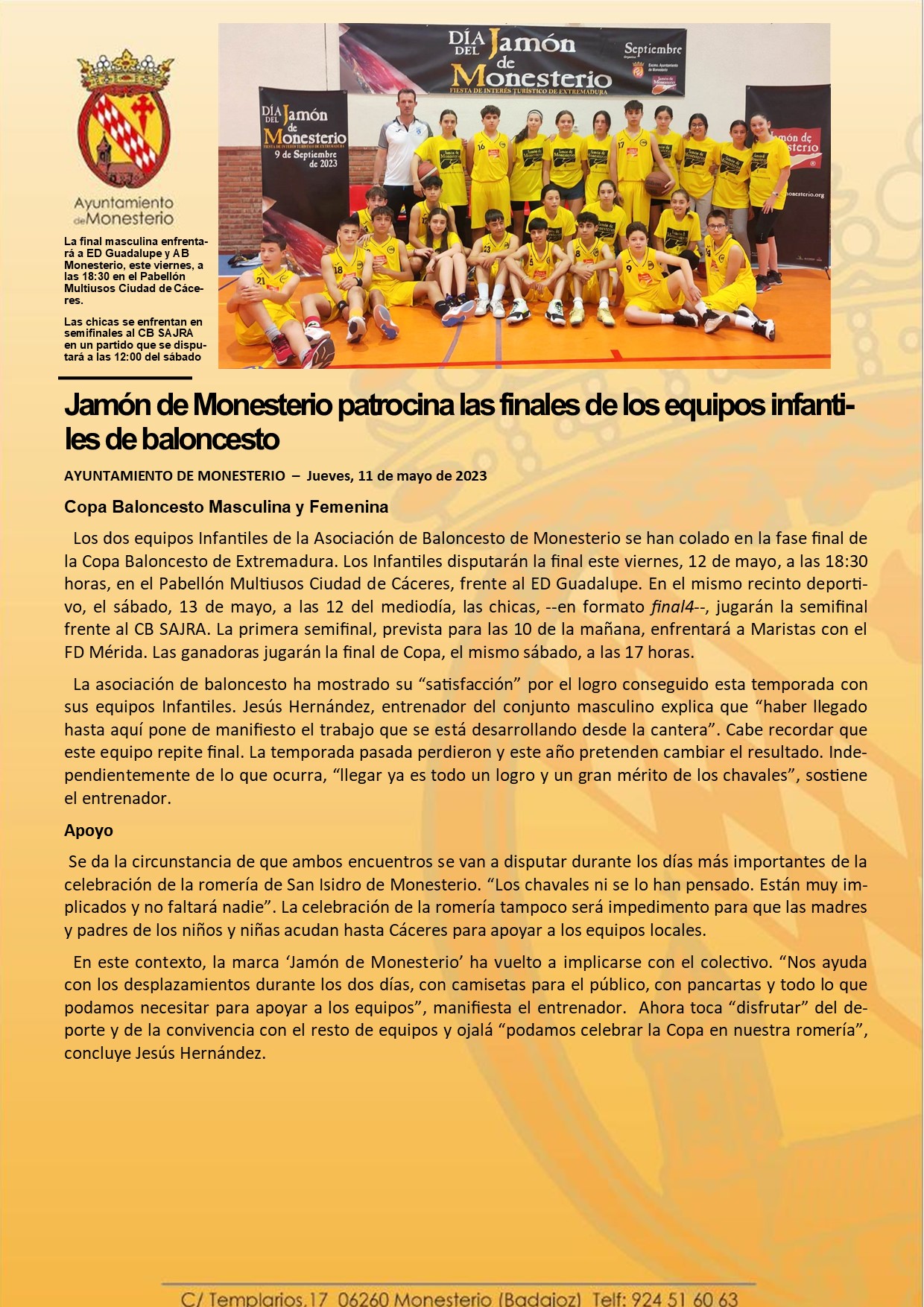 Jamón de Monesterio patrocina las finales de los equipos infantiles de baloncesto