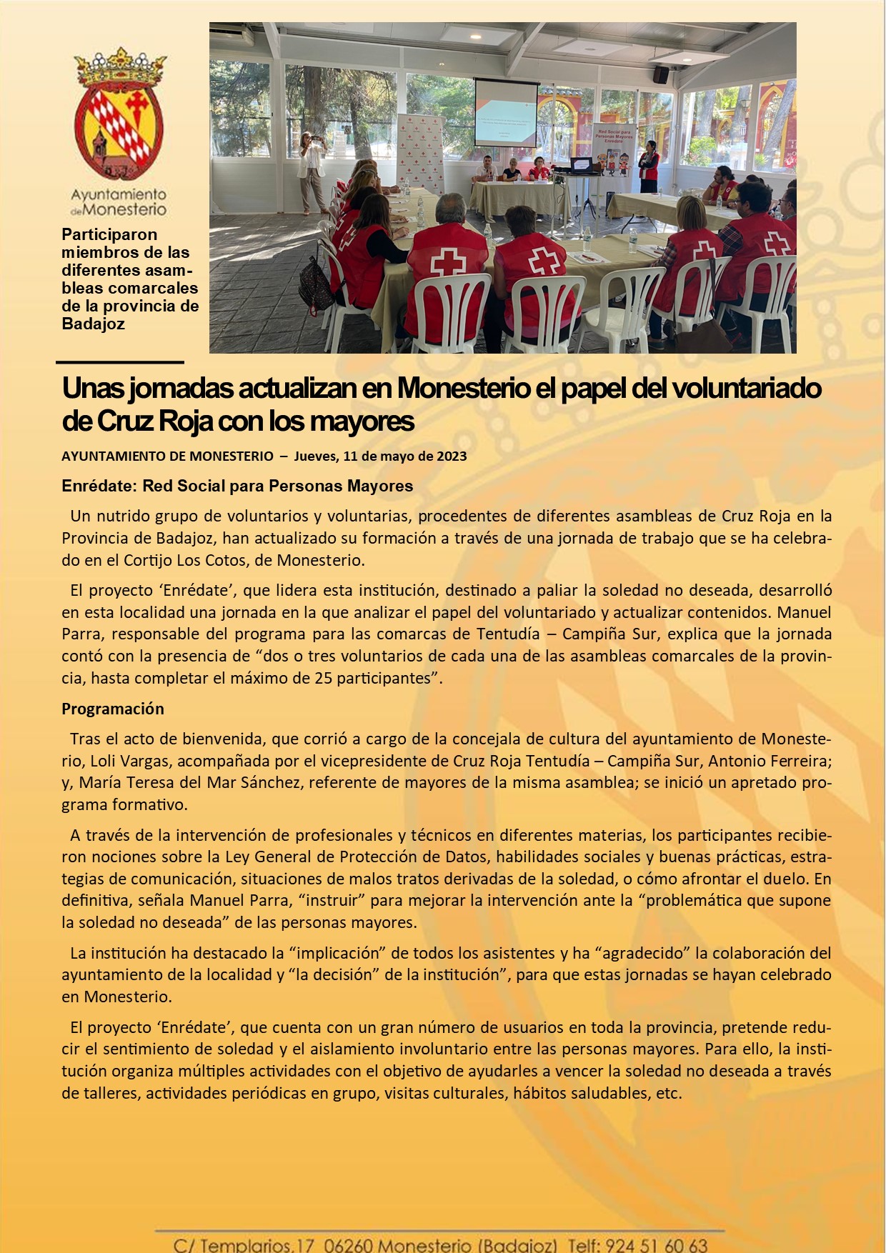 Unas jornadas actualizan en Monesterio el papel del voluntariado de Cruz Roja con los mayores
