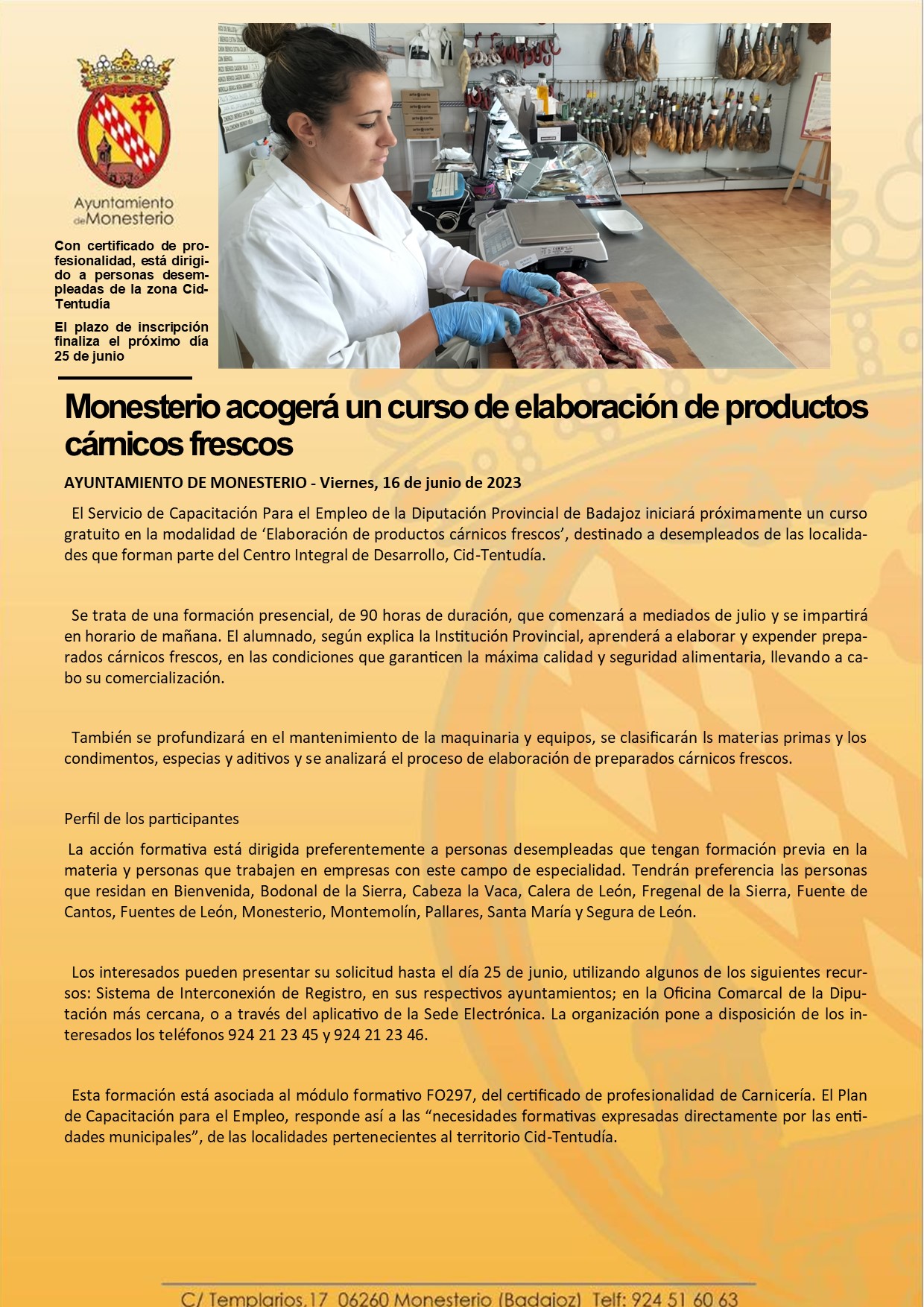 Monesterio acogerá un curso de elaboración de productos cárnicos frescos