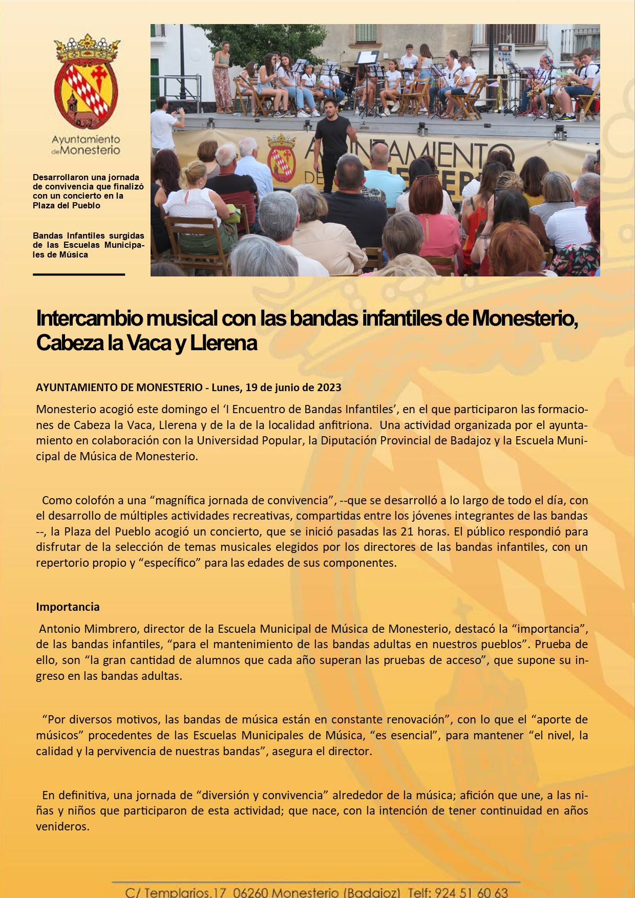 Intercambio musical con las bandas infantiles de Monesterio, Cabeza la Vaca y Llerena