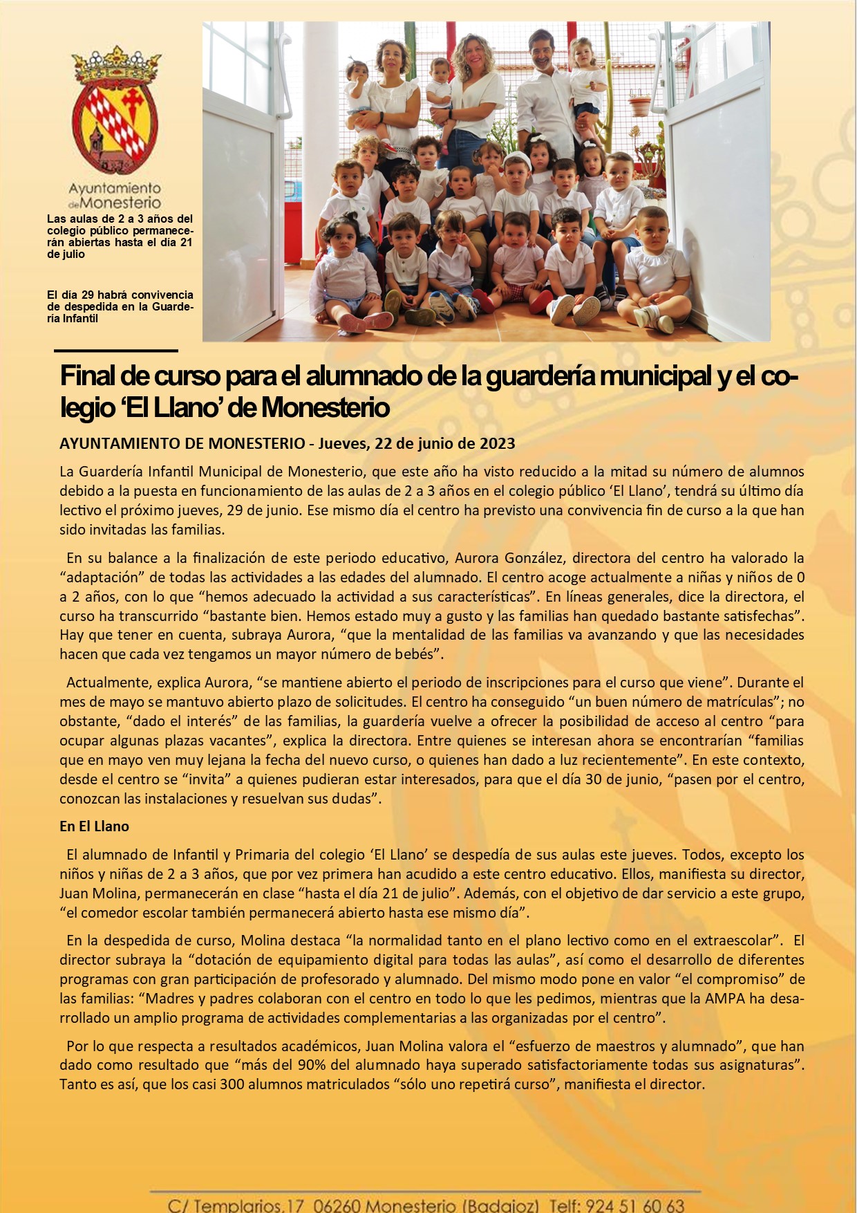 Final de curso para el alumnado de la guardería municipal y el colegio ‘El Llano’ de Monesterio