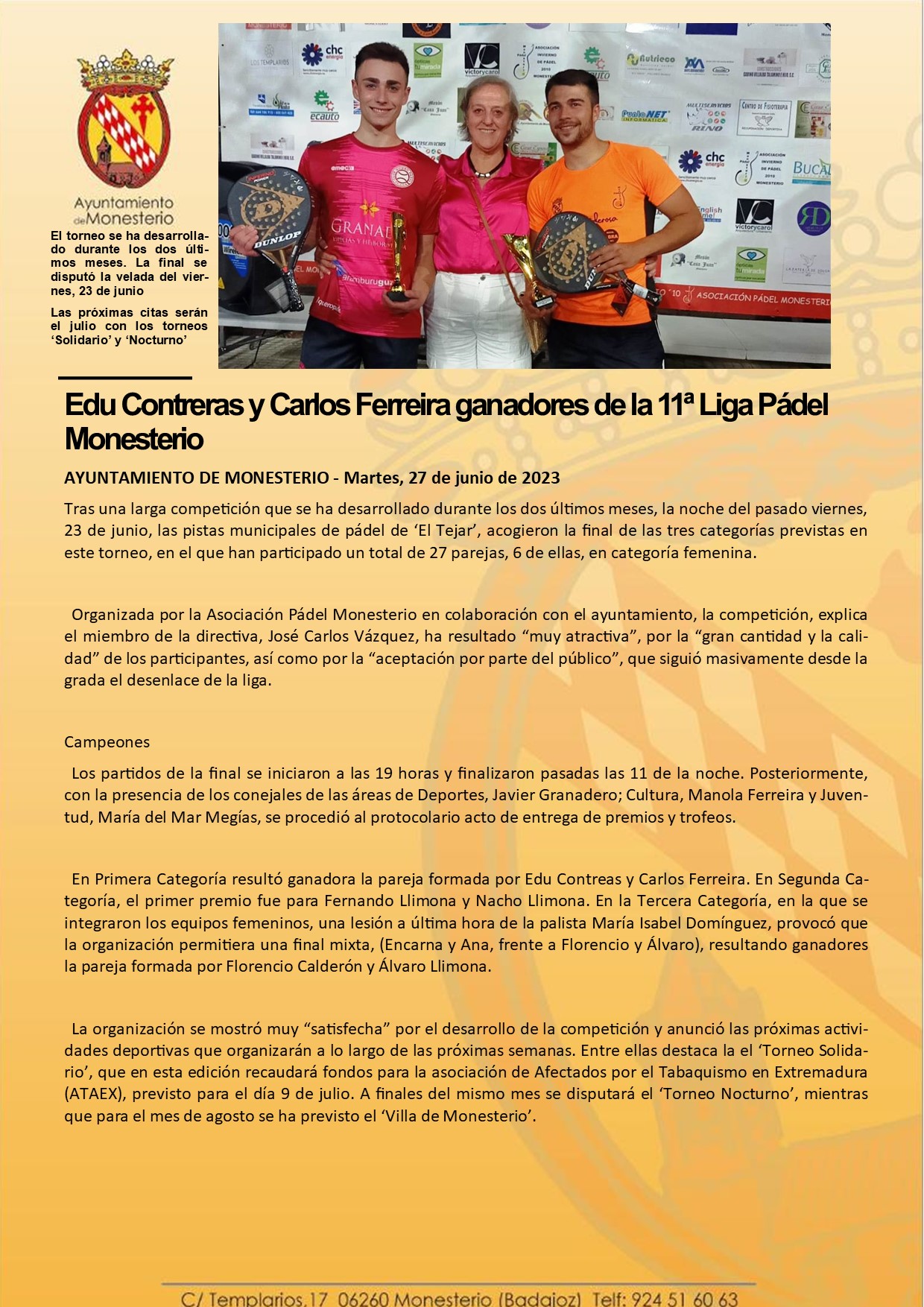 Edu Contreras y Carlos Ferreira ganadores de la 11ª Liga Pádel Monesterio