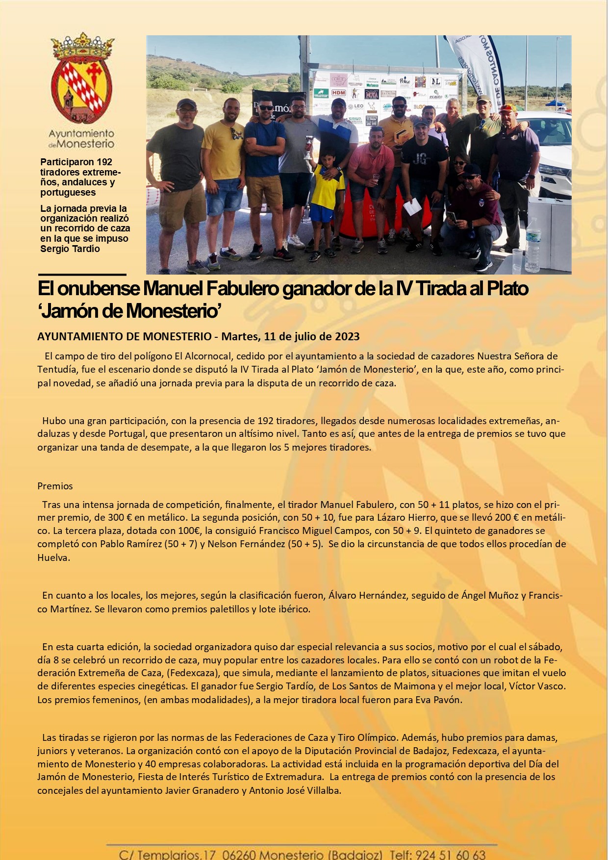 El onubense Manuel Fabulero ganador de la IV Tirada al Plato ‘Jamón de Monesterio’