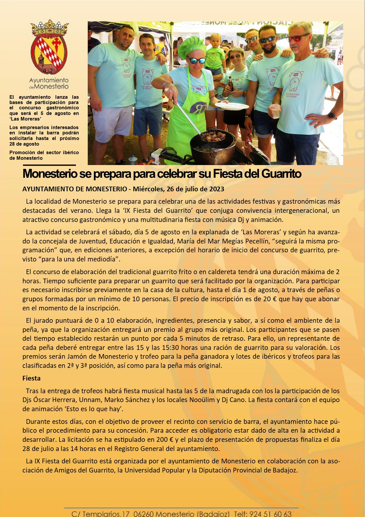 Monesterio se prepara para celebrar su Fiesta del Guarrito