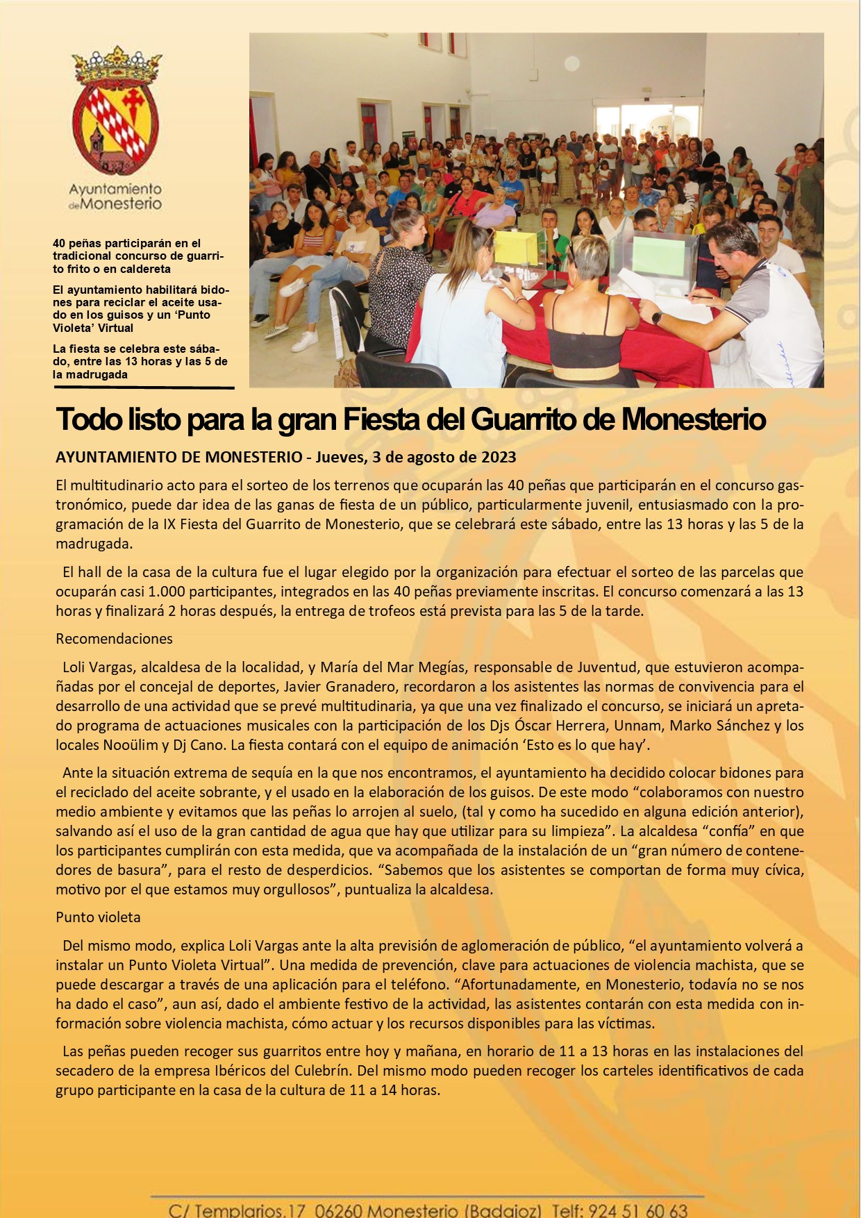 Todo listo para la gran Fiesta del Guarrito de Monesterio