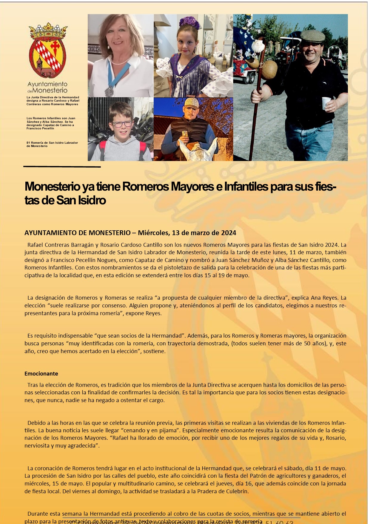 Monesterio ya tiene Romeros Mayores e Infantiles para sus fiestas de San Isidro