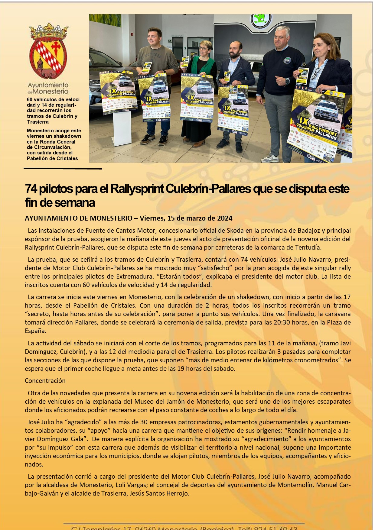 74 pilotos para el Rallysprint Culebrín-Pallares que se disputa este fin de semana