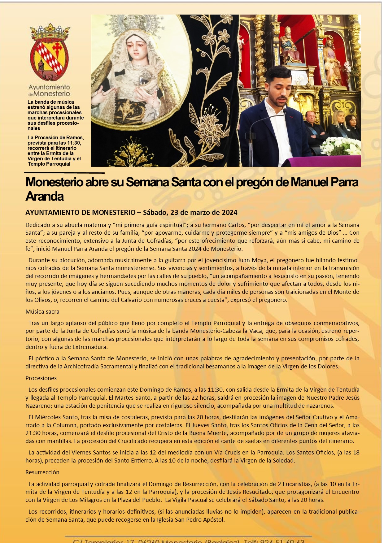 Monesterio abre su Semana Santa con el pregón de Manuel Parra Aranda
