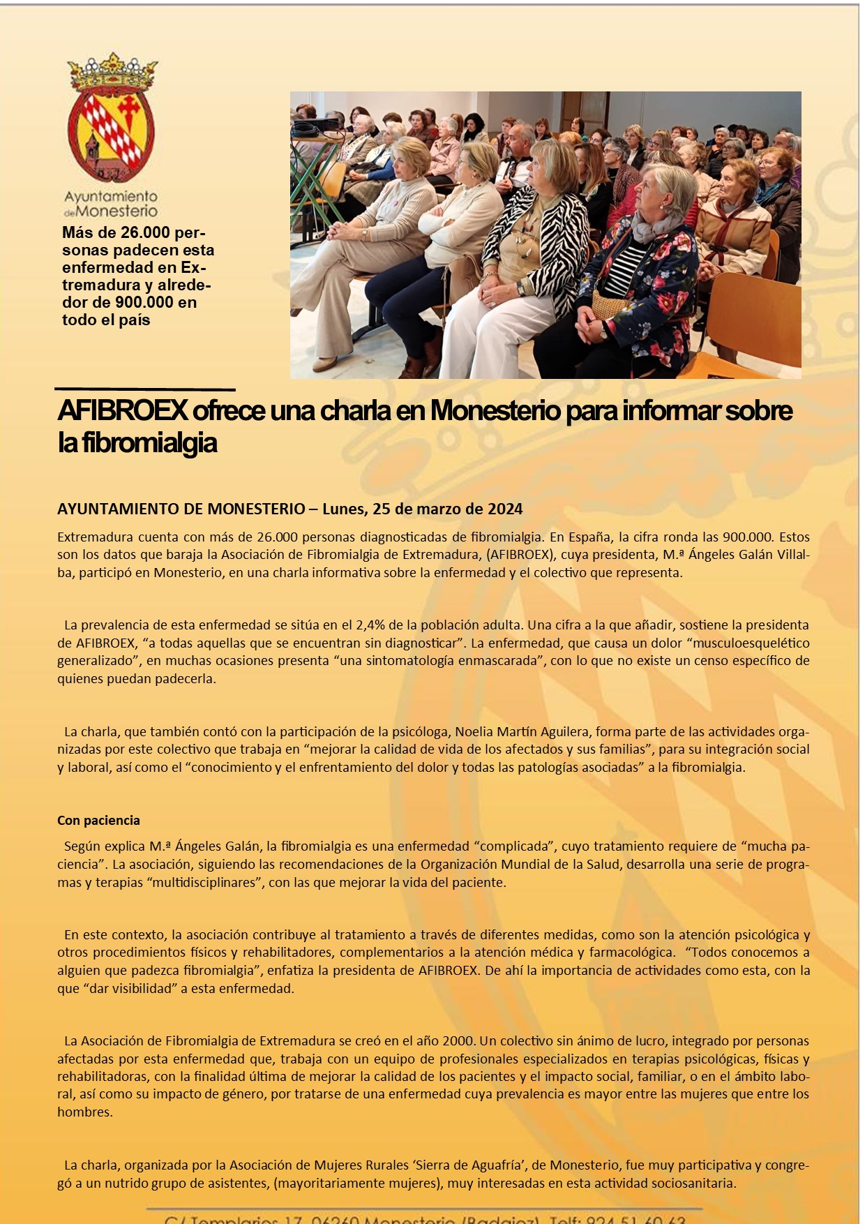 AFIBROEX ofrece una charla en Monesterio para informar sobre la fibromialgia