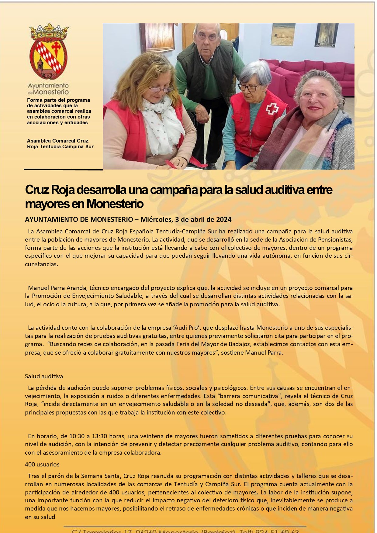 Cruz Roja desarrolla una campaña para la salud auditiva entre mayores en Monesterio
