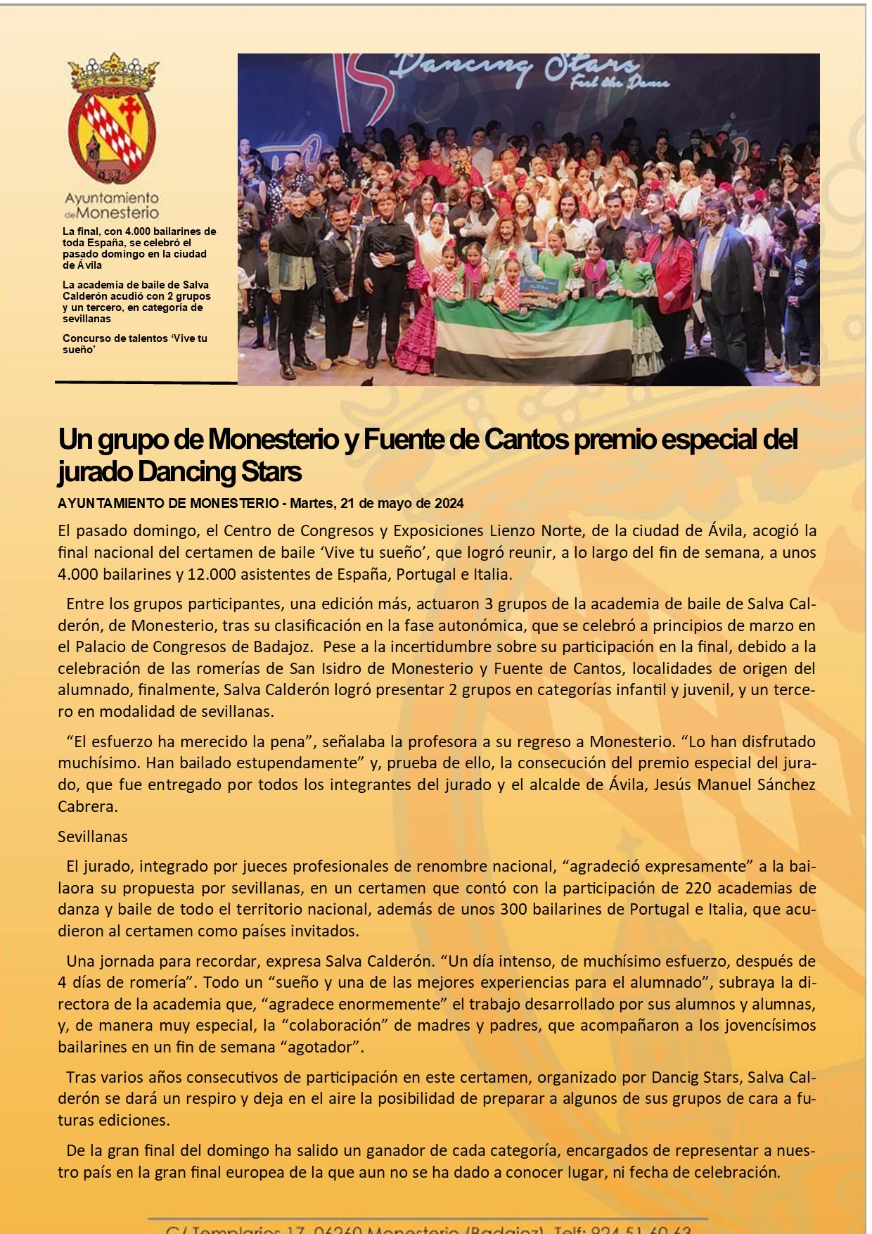 Un grupo de Monesterio y Fuente de Cantos premio especial del jurado Dancing Stars