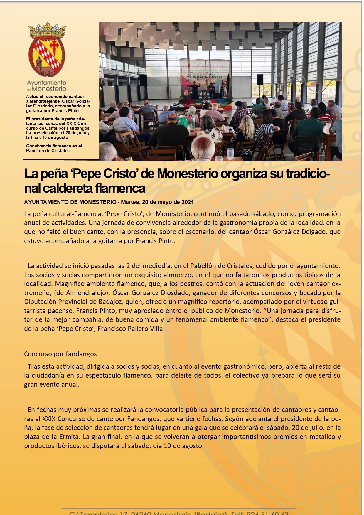 La peña ‘Pepe Cristo’ de Monesterio organiza su tradicional caldereta flamenca