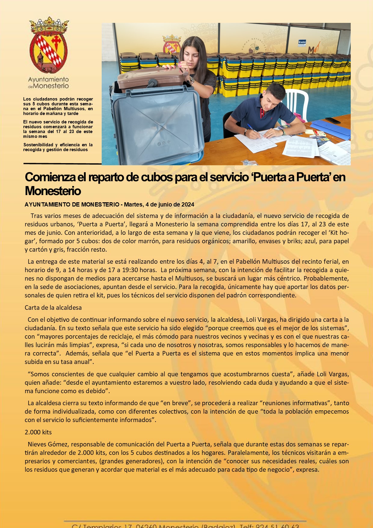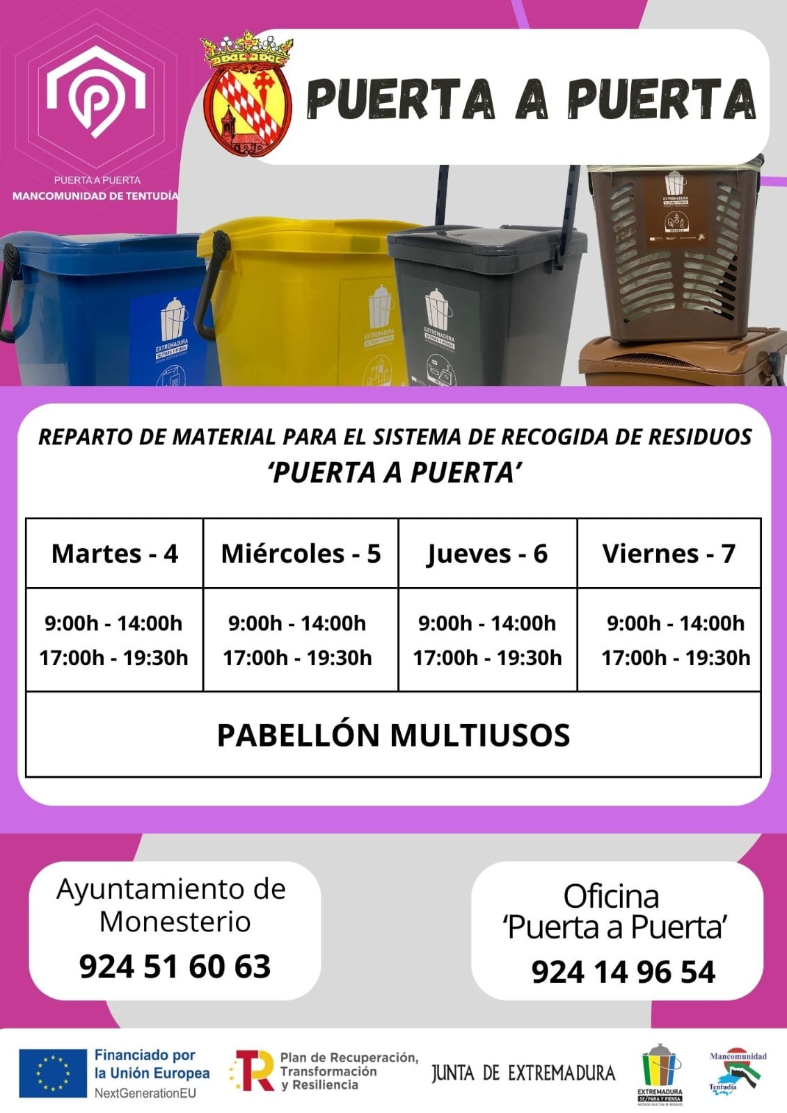 Comienza el reparto de cubos para el servicio ‘Puerta a Puerta’ en Monesterio