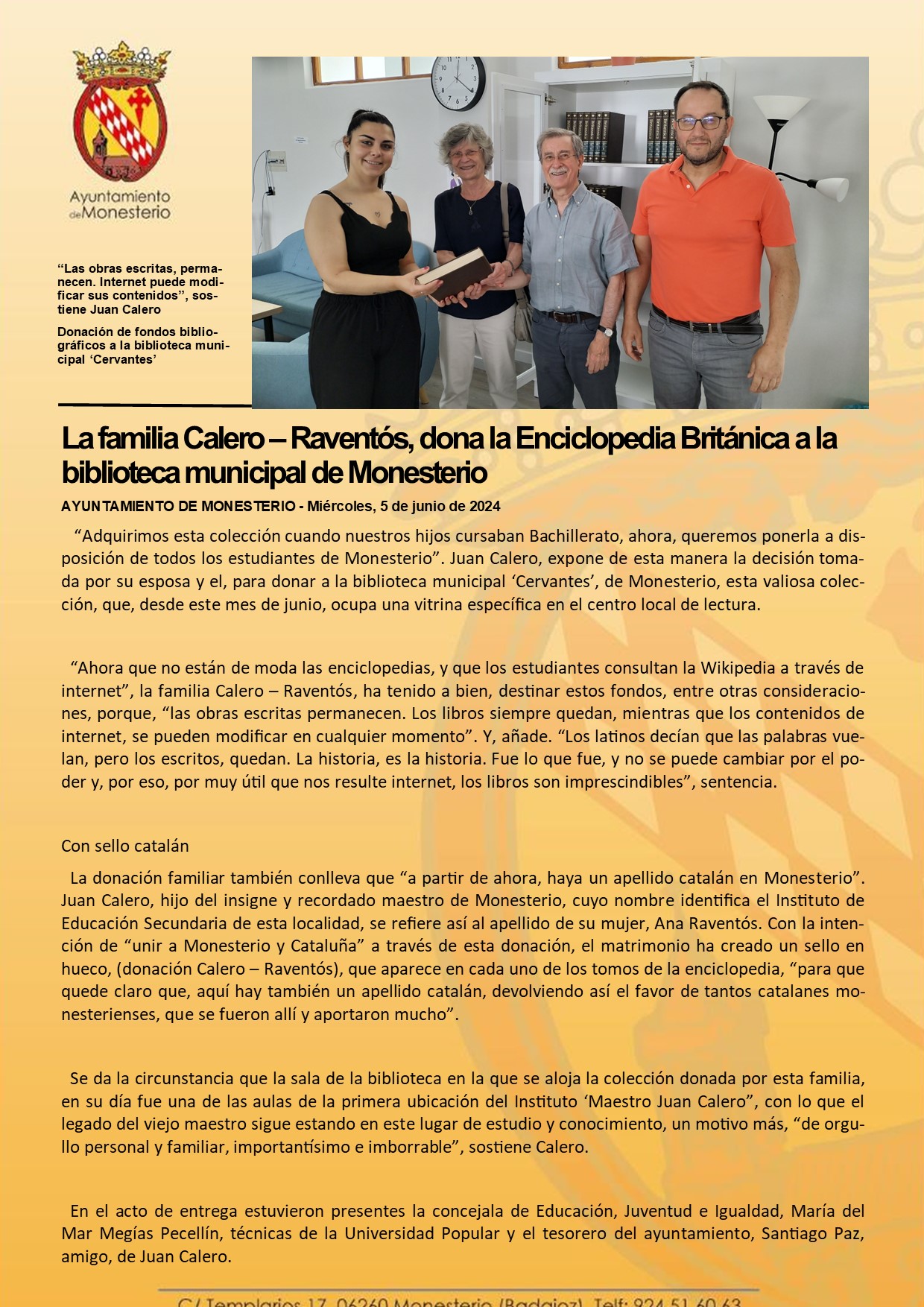 La familia Calero – Raventós, dona la Enciclopedia Británica a la biblioteca municipal de Monesterio
