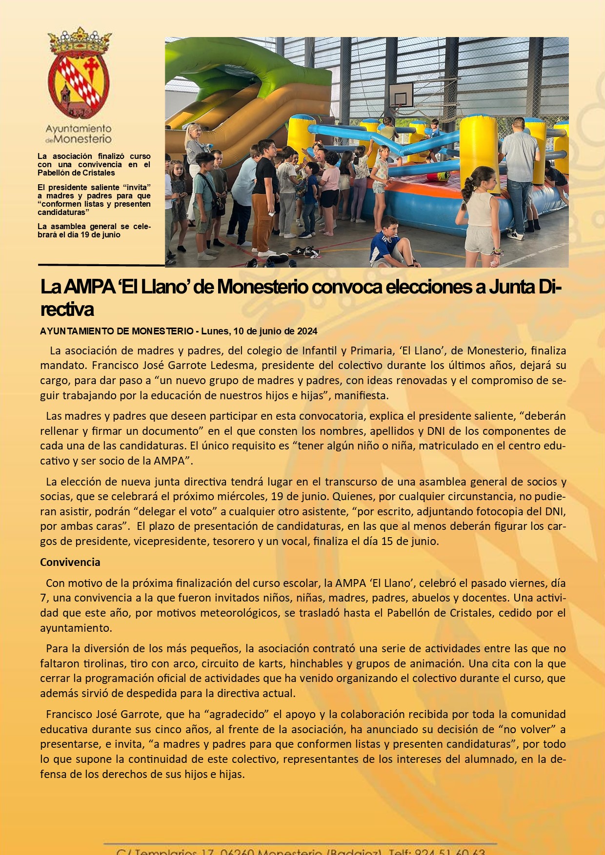 La AMPA ‘El Llano’ de Monesterio convoca elecciones a Junta Directiva