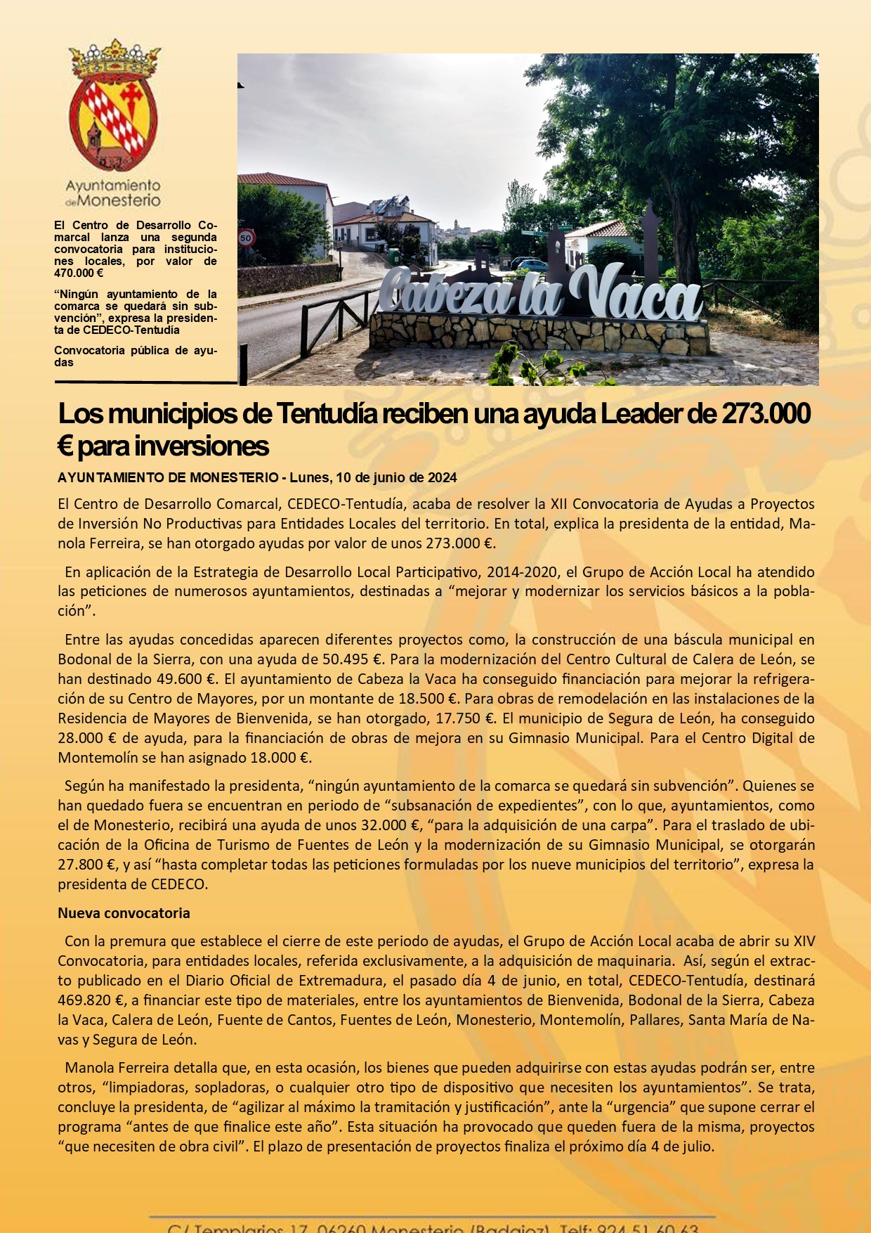 Los municipios de Tentudía reciben una ayuda Leader de 273.000 € para inversiones