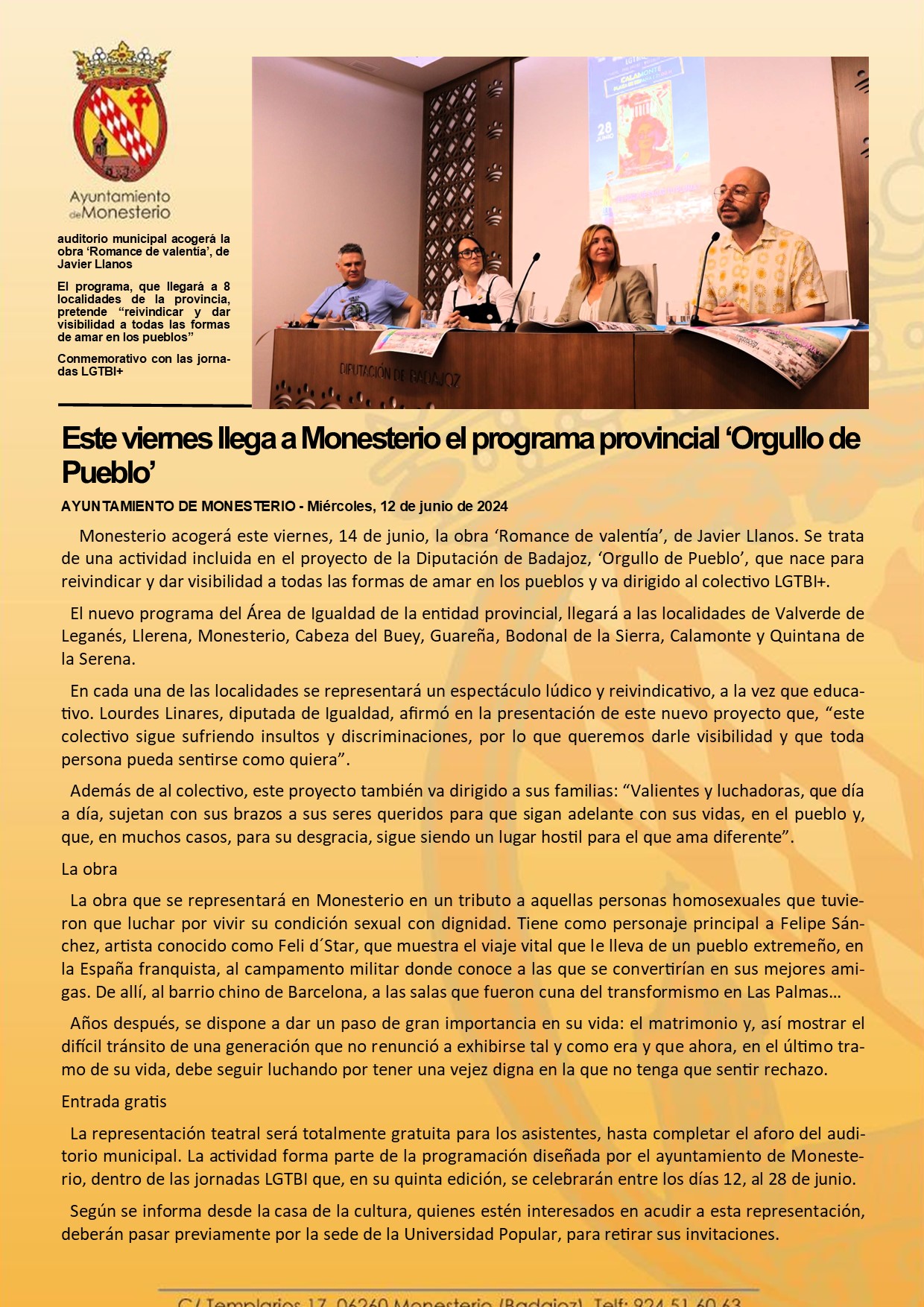 Este viernes llega a Monesterio el programa provincial ‘Orgullo de Pueblo’